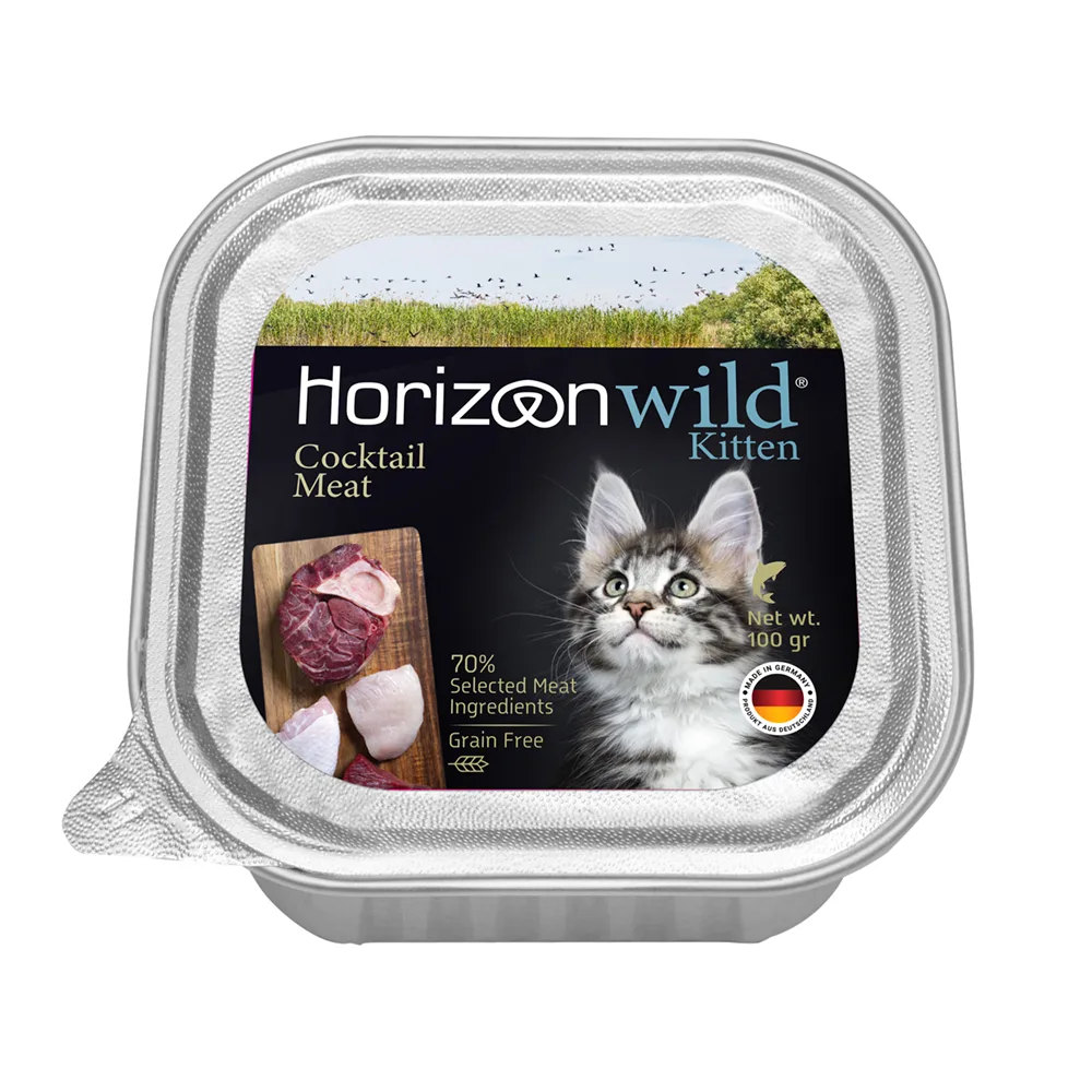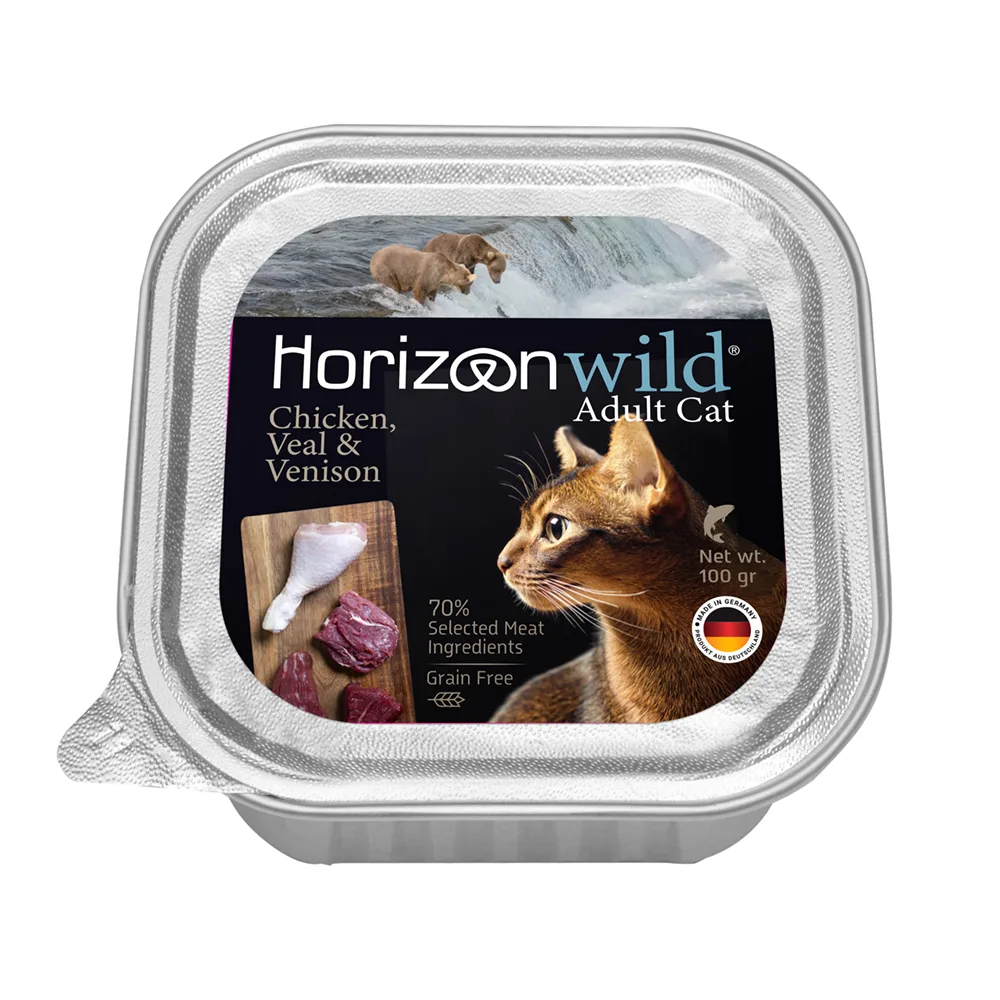 סדרת הוריזן WILD מזון אצולה מלא ומאוזן לחתולים הרפתקנים בלב ובנשמה. מתכונים עשירים 100% טבעיים המשלבים כמה בשרים איכותיים כמו עוף, הודו, בקר, טלה, עגל צבי, סלמון, הרינג ושרימפס לחוויית טעם מלאה עם ויטמינים ומינרלים חיוניים. ארוחה שנועדה לעורר את היצר הטבעי של החתול ולספק לו תזונה מגוונת, טעימה בכל ארוחה.