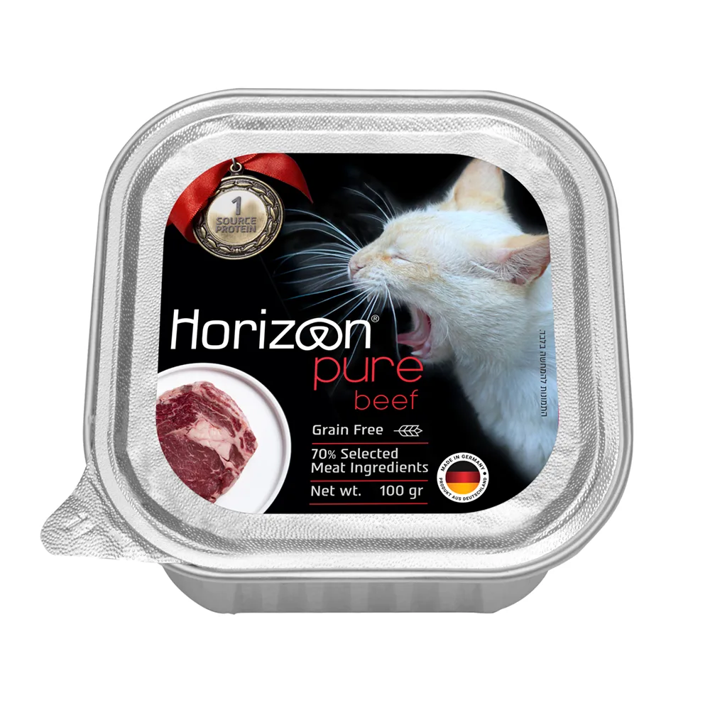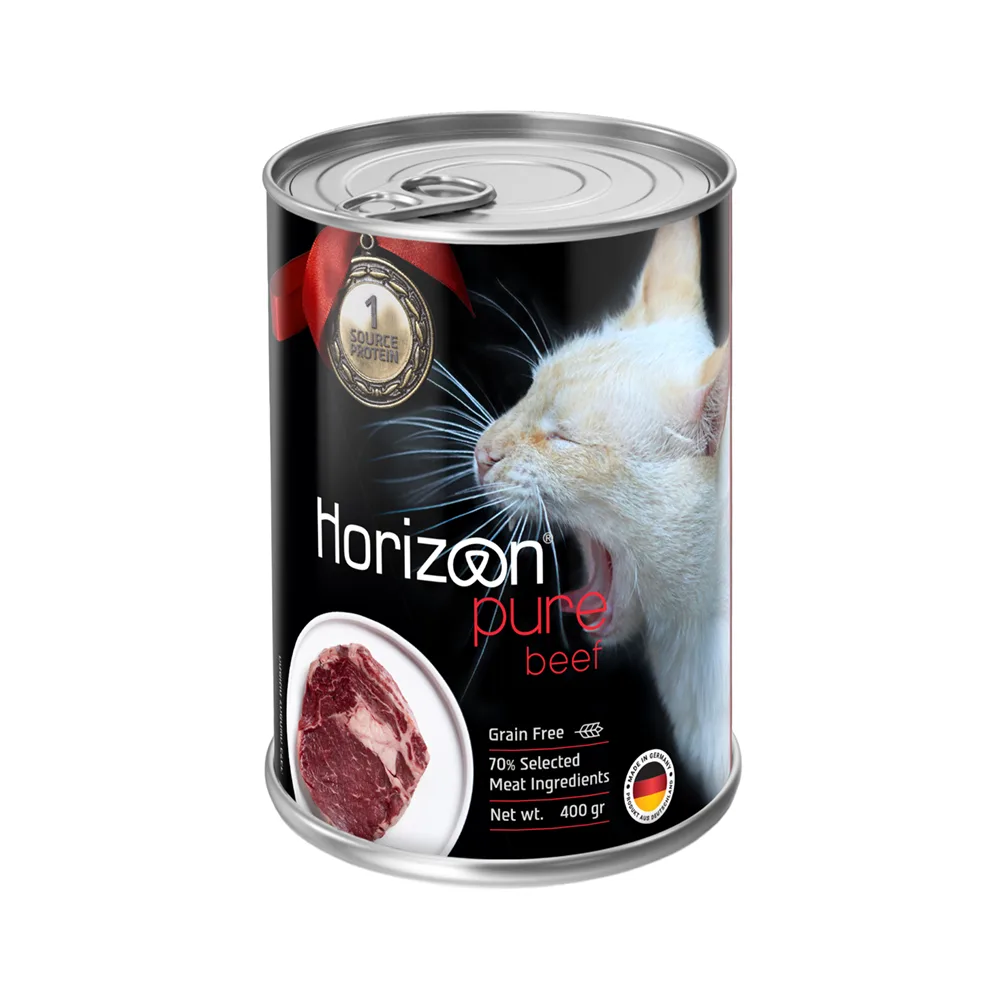 סדרת הורייזן PURE מזון סדרת מזון אצולה מלא ומאוזן 100% טבעי לחתולים עם העדפה לבשר מסוים, או רגישות למקור חלבון .PURE סדרת סדרה המבוססת על מקור מחלבון אחד בלבד, מה שהופך אותו לאידיאלי לחתולים עם טעם מועדף וברור או לחתול עם מערכת עיכול רגישה. ארוחה בה תוכלו לדעת בדיוק מה בקערה והחתול שלכם ייהנה מבשר איכותי ונקי.